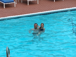 Sarah ist müde! Aber ein kurzer Blick auf den Pool reicht und sie will noch ein paar Runden schwimmen. Es hat übrigens ca. 17 Grad... Brrrhh! Gut, dass der Pool beheizt ist!