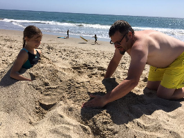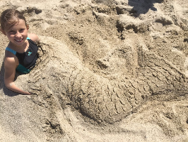 Fazit heute: Sarah hatte Spaß am Sandburgen bauen, findet aber Baden "im Winter" zu kalt. Dann lieber Wüste und Pool als kalt und Meer.