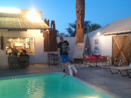Nachdem Marc gestern festgestellt hat, dass unser Auto gern einen Ölwechsel hätte und nachdem keiner von uns Interesse an einer Panne in der Wüste hat, haben wir nach Rücksprache mit der Autovermietung eine Werkstatt aufgesucht. Wie erwartet, hatte man dort heute keinen Termin mehr für uns.Somit werden wir morgen früh um 8:00 den Ölwechsel durchführen lassen bevor wir gegen Mittag von hier aufbrechen. Aus der Wüste zurück in die Zivilisation... Welch ein Schock! Denn uns gefällt es hier sehr gut!